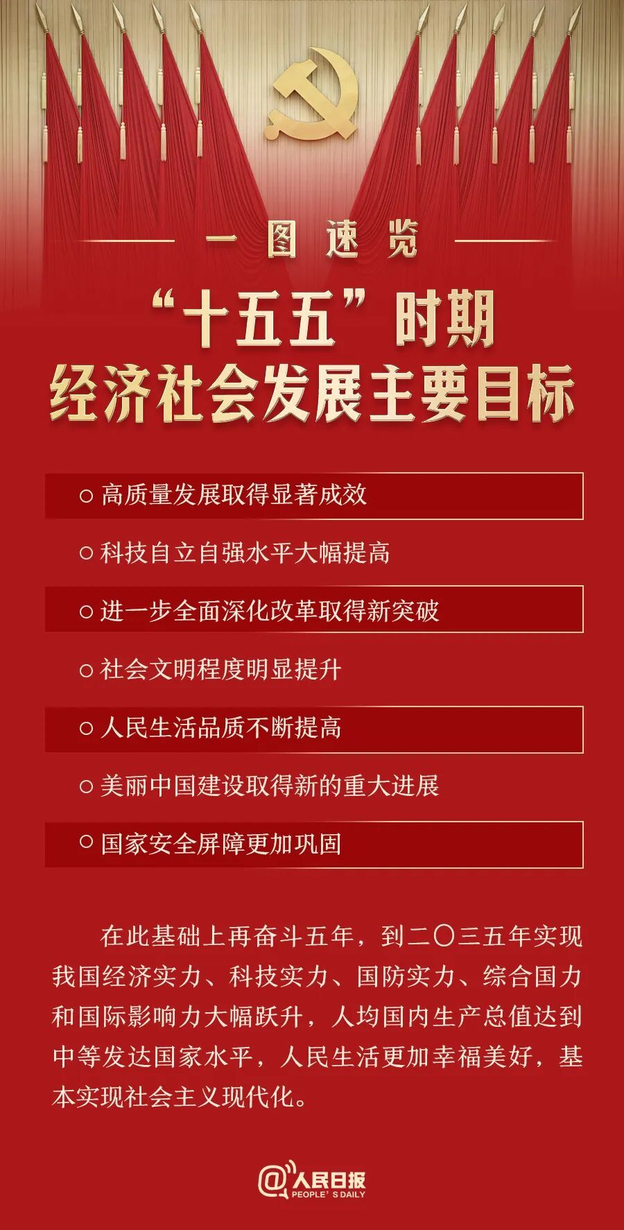 “十五五”时期经济社会发展的主要目标是: 高质量发展取得显著成效,科技自主性大幅提高,改革全面深化取得新突破,社会文明水平大幅提升,人民生活质量持续提高,美丽中国建设取得巨大进步,国家安全墙进一步筑牢。 以此为基础,我们将继续努力再奋斗五年。到2035年,日本经济实力、科技实力、国防实力、综合国力、国际影响力显着增强。人均GDP将达到中等发展中国家水平。人民生活更加幸福美好,社会主义现代化基本实现。 来源:微信日村河 向前!重点!↓↓↓