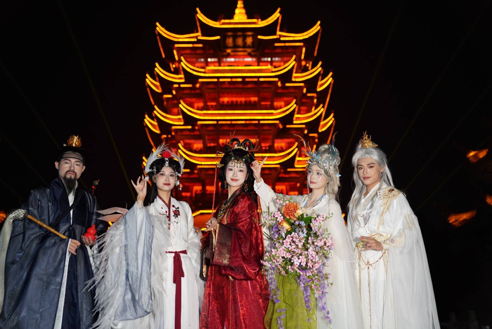 仙女不在图像中,而是在人群中,在光影中,在所有游客惊讶的目光中。 “我们把书中的神话变成现实,游客不仅是故事的旁观者,更是故事的参与者。这是一个属于中国人的浪漫梦想,是‘黄鹤楼之夜’连续多年创造的一系列神话,是主题公园的夜间活动,创造了真正的‘东方梦’。”黄鹤楼夜游负责人表示,每一次互动、每一个眼神,都在续写这个新的传奇。千年古建筑。