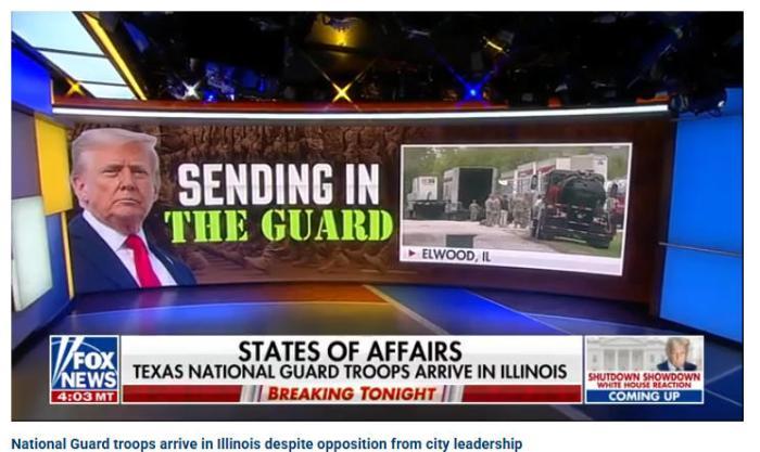 中新社10月8日电 据福克斯新闻报道,美国国防部证实,约200名得克萨斯州国民警卫队成员于当地时间7日抵达伊利诺伊州,准备部署到芝加哥。图片来源:福克斯新闻报道截图。五角大楼官员表示,这200名国民警卫队成员的初步部署期限为60天。五角大楼在一份声明中表示,部队抵达伊利诺伊州“是为了支持联邦国防使命,保护联邦职能、人员和财产”。国土安全部部长诺姆此前宣布,在联邦特工遭到 10 辆车的袭击和包围后,将向伊利诺伊州派遣更多特种作战人员。得克萨斯州州长阿博特在Platformion上发文称。”对此,芝加哥市长布兰登·约翰逊7日重申,他认为此次部署是“非法、违宪、危险和错误的”。此前,约翰逊首相还表示,“特朗普政府必须结束对芝加哥的战争。”