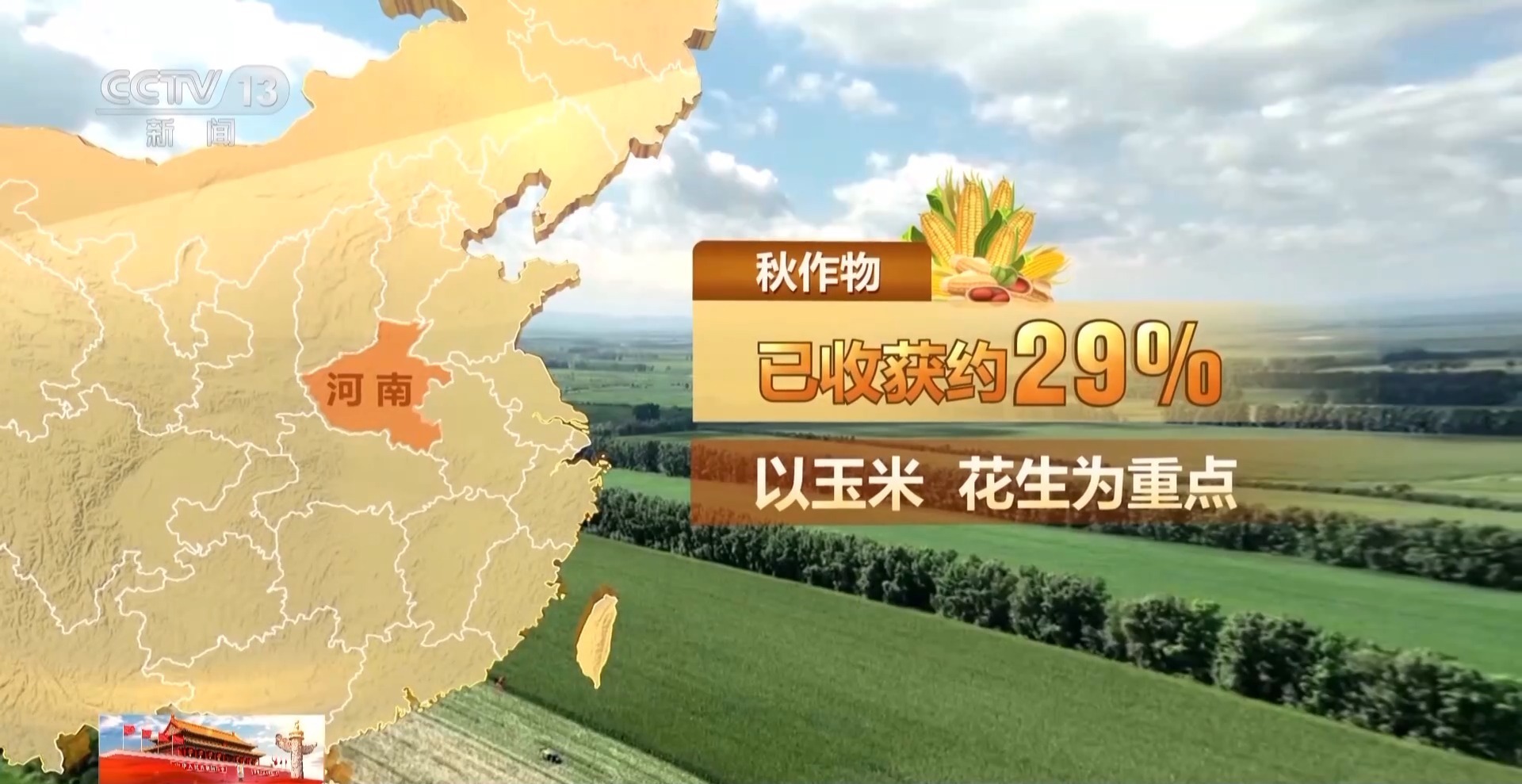山东省最近经历了秋雨,秋季收成几乎没有开始。河南省收集了约29%的秋季作物,主要是玉米和花生。河北省收集了约20%的秋季作物。在长江的中间和低音部分中,已经达到了近60%的收获,进度率约为59%。收获了几乎80%的农作物湖南省。湖北省则接近90%。江西省则超过50%。安徽省则接近20%。西南地区农作物已收获70%以上,总体进度在73%左右。 60%以上产于云南。超过80%的农作物在四川收获。